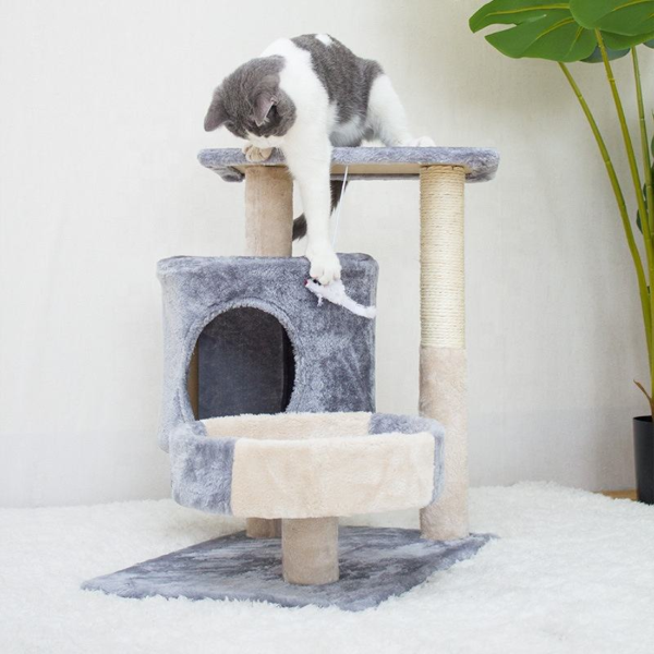 Dale a tu gato su propio espacio de juego y descanso con este práctico rascador compacto. Cuenta con dos plataformas ideales para trepar y observar, y una cucha circular súper cómoda para sus siestas favoritas. Su parante recubierto en hilo sisal es perfecto para que afile sus uñas y se mantenga activo, ayudando a proteger tus muebles.
