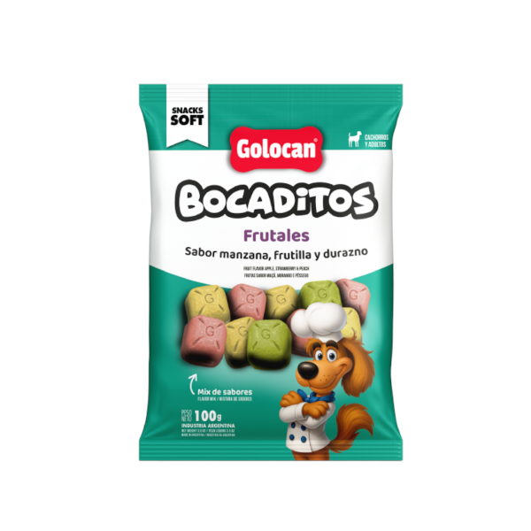 Deliciosos bocaditos blandos y semihúmedos con sabor a mix de frutas (manzana, frutilla, durazno)