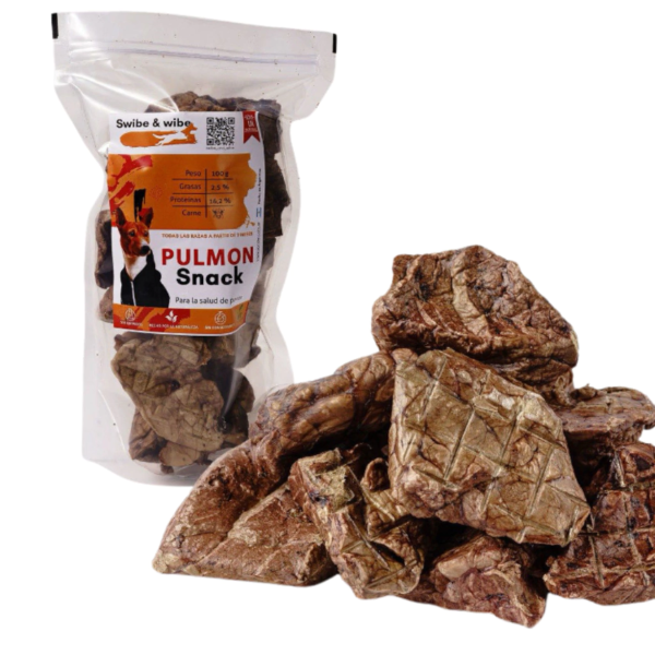 Snack natural y delicioso, elaborado con pulmón deshidratado. Liviano, fácil de masticar e ideal como premio diario o recompensa en el entrenamiento. Una opción saludable para mimar a tu peludito con un sabor que le encanta 🐾